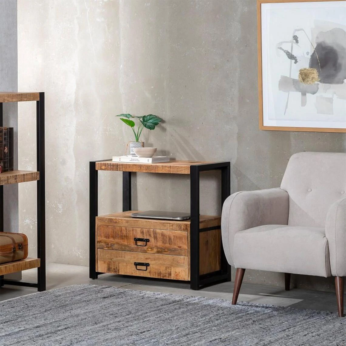 Meuble de Rangement en Manguier Massif et Métal Noir de la gamme Indys.