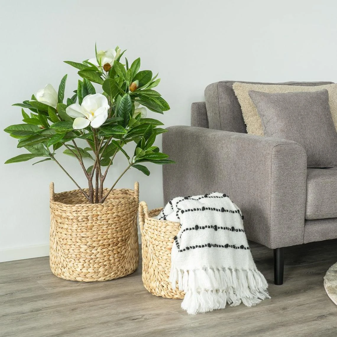 Lot de 2 Panières Rondes en Jacinthe d’Eau de la gamme Mikail.