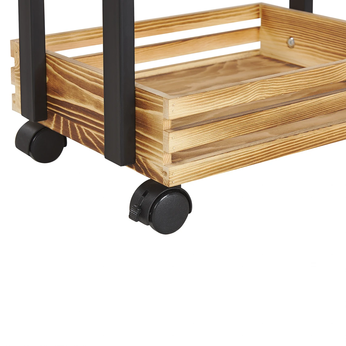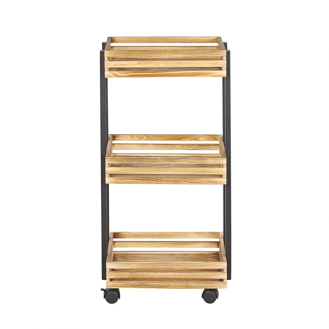 Desserte de cuisine à roulettes en bois de paulownia et métal noir. Une desserte à roulettes est un accessoire must have dans chaque maison. Elle vous facilitera la vie même en dehors de votre cuisine ou de votre salle de bains. Ce modèle vous offre 3 étagères spacieuses pour ranger tous les petits objets quotidiens, tels que vos produits de beauté ou vos fruits et légumes. Que ce soit dans la cuisine, la salle à manger ou la salle de bains, cette desserte à roulettes peut être déplacée sans effort et vous aider à garder votre espace bien organisé. Fabriquée en bois de paulownia naturel et doté d’un cadre en métal noir, cette jolie desserte de cuisine pratique sera aussi un superbe ajout déco aux intérieurs modernes, industriels et scandinaves. Un achat que vous n’allez pas regretter. Détails: Type de produit: Chariot de cuisine Style: Industriel Couleur principale: Bois clair Type de matière: Métal Matière principale: Acier Matière secondaire: Bois de paulownia Matière du piétement: Plastique Matière du plateau: Bois solide Tiroirs: Non Finition: Flambé Patins pour pieds: Non Étagères: Oui Dimensions: Profondeur: 29 cm Largeur: 38 cm Hauteur: 76 cm Poids: 3 kg Charge maximum de l`étagère:: 2 kg Charge admise du plateau: 3 kg L`offre inclue: 1 x Desserte de cuisine Caractéristiques clés: Vérrou pratique, Convient dans une salle à manger, une cuisine ou un bar, Un style simple s’adaptant à tout type d’intérieur, Matières de haute qualité, Espace de rangement pratique pour toutes vos affaires Informations d`assemblage: À assembler entièrement. 20 – 40 min Conseils de maintenance: Acier: 1.Pour les éléments en cuivre ou chromés, utilisez un produit de polissage spécial 2.Pour éviter les rayures, n’utilisez pas de nettoyants abrasifs 3. Nettoyez avec un chiffon et un détergent doux, essuyez bien ensuite. Bois de paulownia: 1.De temps en temps, il est conseillé de mettre une nouvelle couche d’huile sur les meubles avec une finition huilée 2.Essuyez immédiatement après le nettoyage pour empêcher l’eau de s’accumuler sur les meubles 3.Nettoyez avec un chiffon et un nettoyant doux dans le sens du grain du bois.