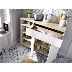 Vente-unique Buffet De Cuisine WAJDI – 2 Portes, 1 Tiroir Et 4 Niches – Blanc Et Ch…