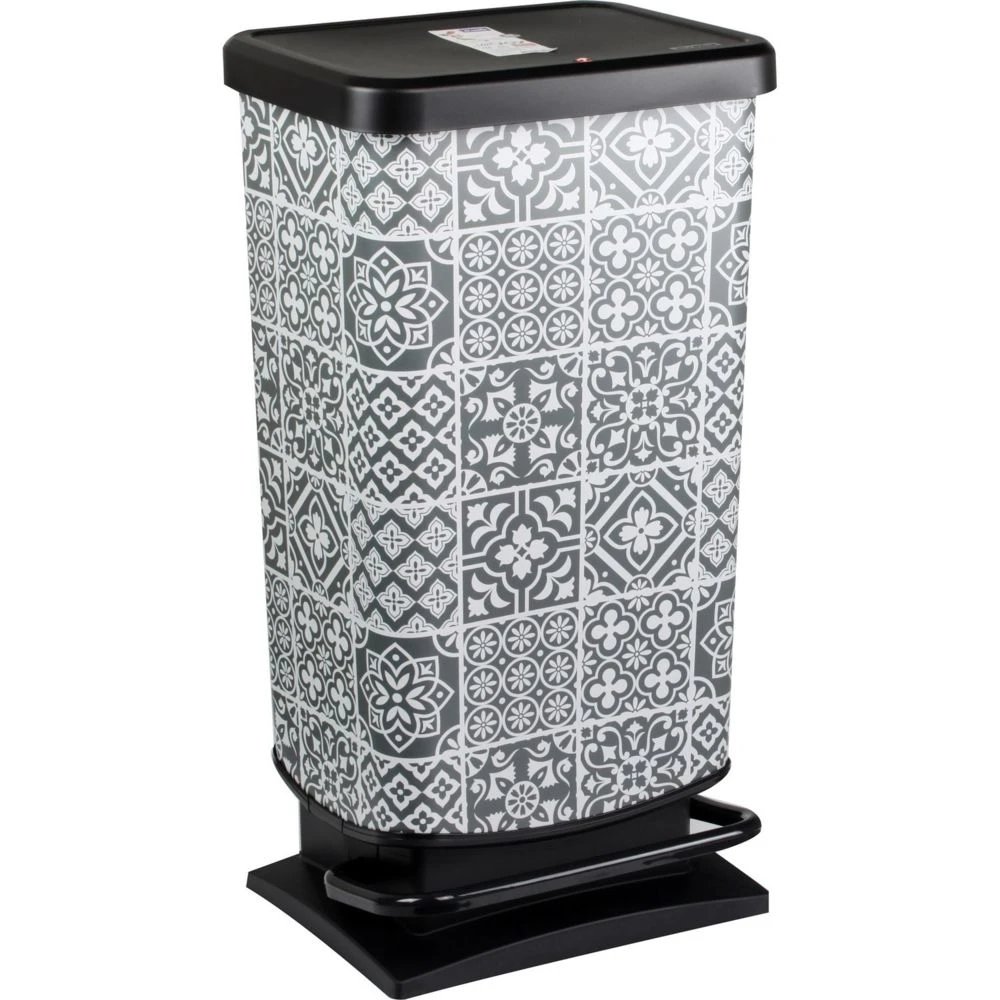 Fabriquée en polypropylène, cette poubelle arbore une élégante mosaïque de tons bleu-gris et blancs. Son couvercle noir uni fait ressortir la richesse de ses motifs. Avec cette allure décorative, mais discrète, elle s’invite aussi bien dans un salon que dans la cuisine.