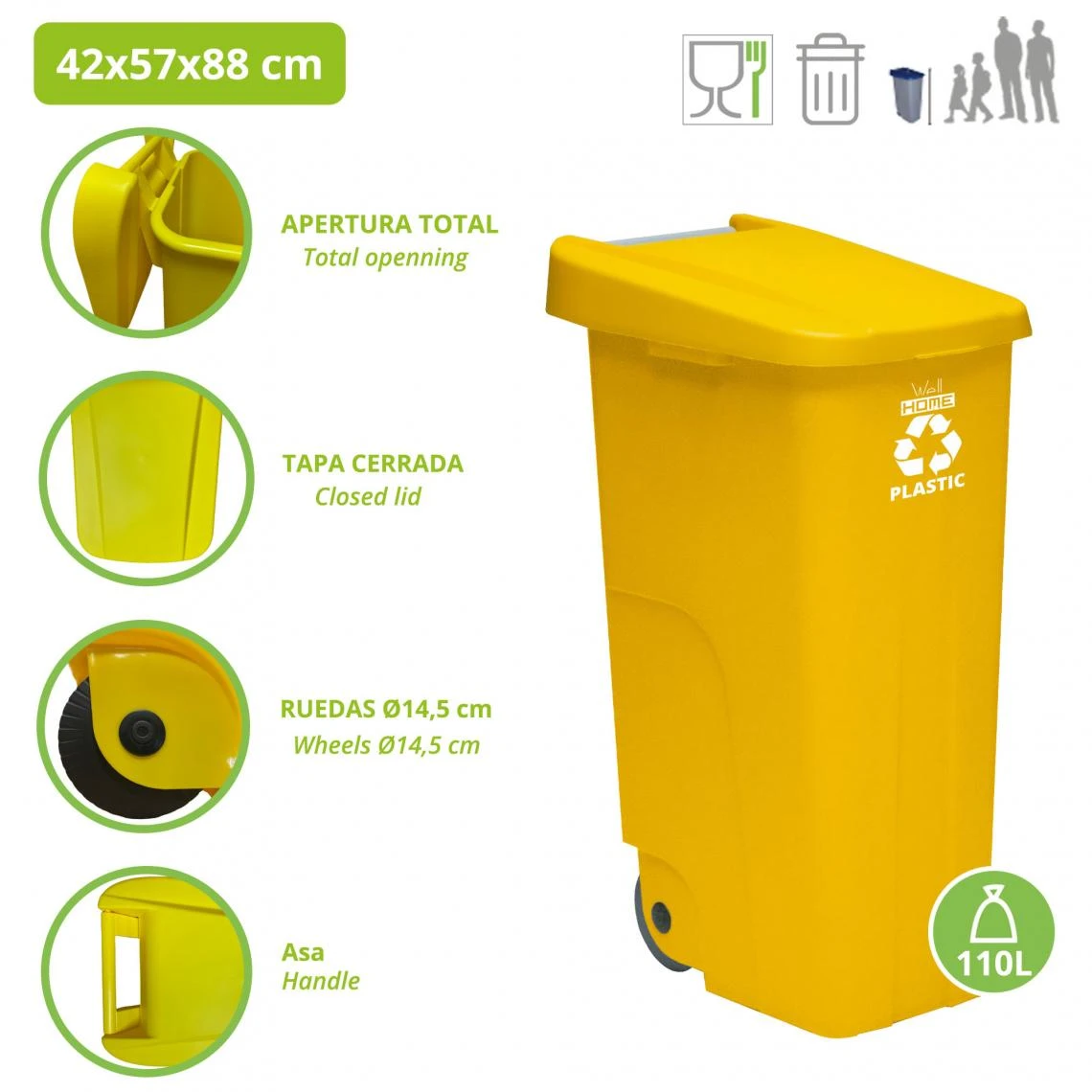 Points forts WellHome Conteneur de recyclage de wellhome 110 litres, fermé avec couvercle, idéal pour le recyclage en plastique, avec roues + sacs à ordures 3x 10 unités