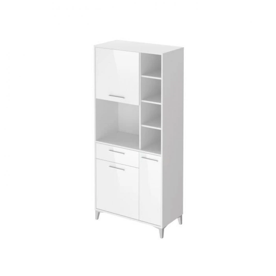 buffet de cuisine – structure en panneaux de particules mélaminés blanc brillant pour les façades et blanc mat pour les structures – style et design contemporain – 3 portes, 1 tiroir et 3 étagères – fabrication européenne – dimensions totales l 80xp 40xh 178 cm.