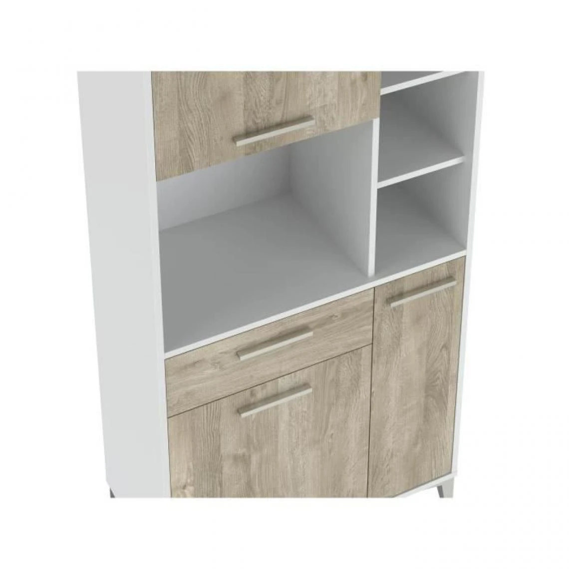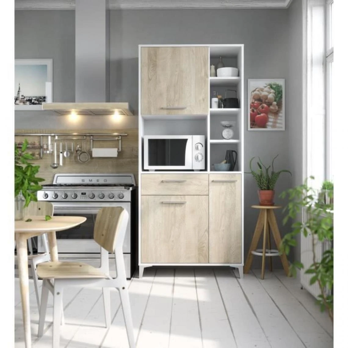 ECO Buffet de cuisine – Structure en panneaux de particules décor chene pour les façades et mélaminé blanc mat pour les structures – Style et design contemporain – 3 portes, 1 tiroir et 3 étageres – Fabrication européenne – Dimensions totales L 80 x P 40 x H 178 cm.