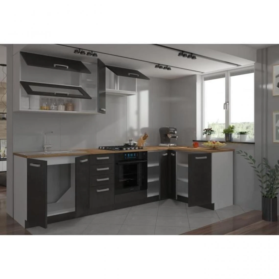 Points forts Cstore LASSEN Cuisine complete d’angle 240×165 cm avec plan de travail – Gris Matera