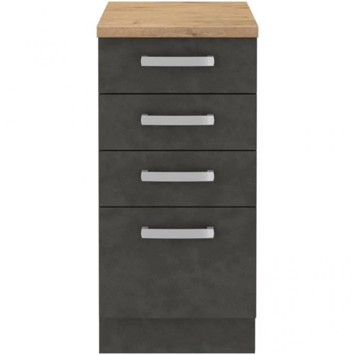 meuble bas LASSEN 4 tiroirs largeur 40cm hauteur 85cm profondeur 51,6cm avec plan de travail stratifié épaisseur 28mm profondeur 60cm coloris gris mat