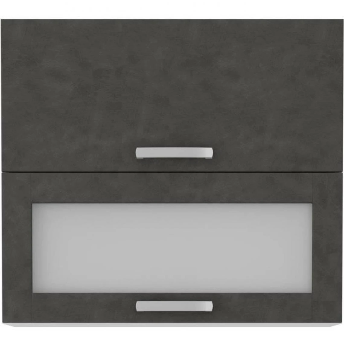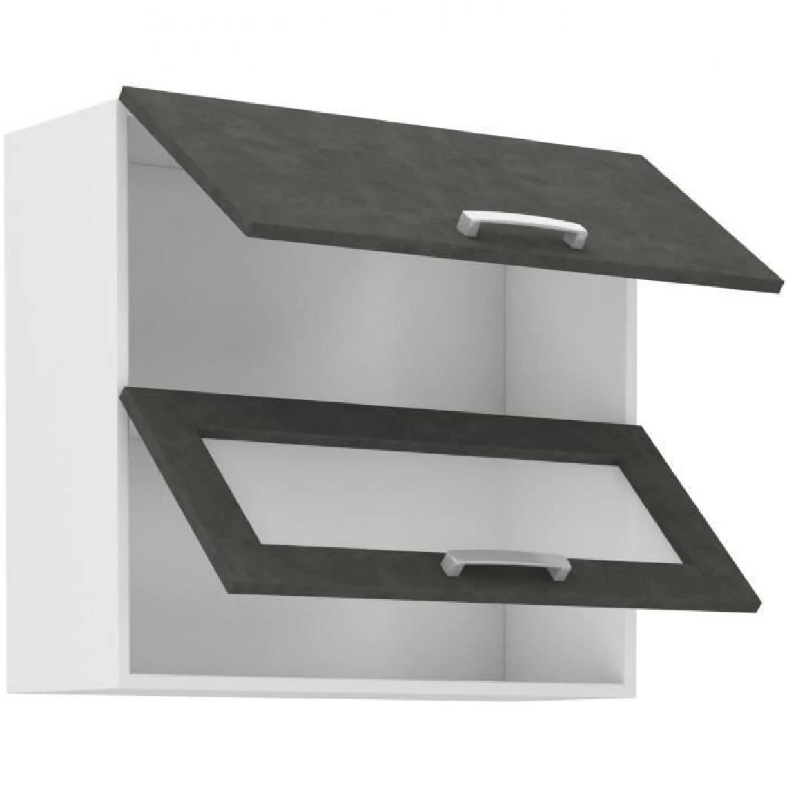 Meuble haut LASSEN 2 portes basculantes (1 vitrée) largeur 80cm hauteur 72cm profondeur 31,6cm coloris gris mat.