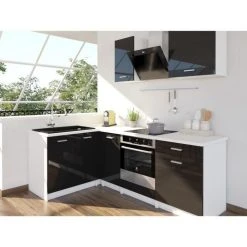 CSTORE EXTRA – Cuisine Complète D’angle L 240cm – Noir Laqué