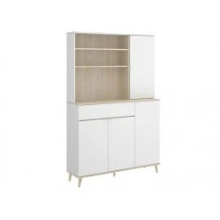 Vente-unique Buffet De Cuisine WAJDI – 4 Portes, 1 Tiroir Et 3 Niches – Blanc Et Ch…