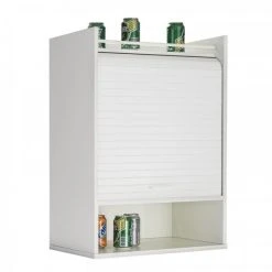 Meuble de cuisine bois blanc à rideau coulissant à poser ou à suspendre