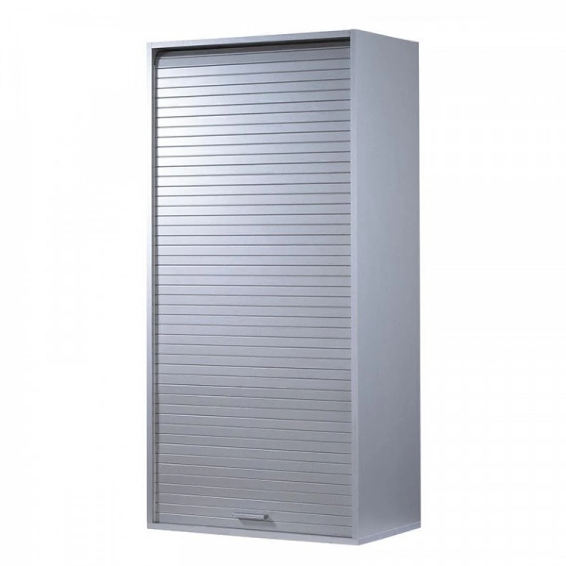 Meuble de rangement à rideau coulissant en bois gris teinte argent