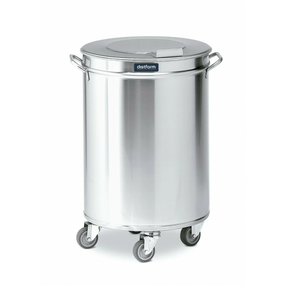 Points forts DISTFORM Poubelle à 3 Roulettes avec Couvercle Amovible – Capacité de 50 à 95L – Distform – – Acier inoxydable95 450 Ø x 685