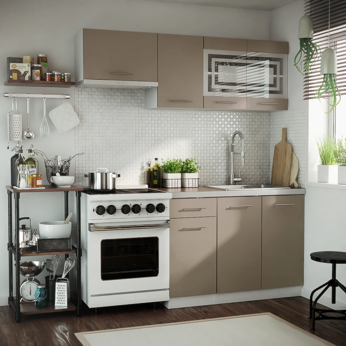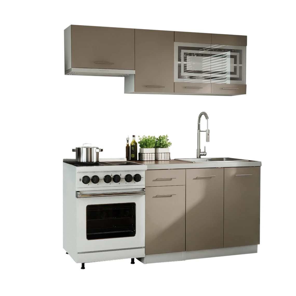 Points forts Dusine Cuisine GIOVANNA 5 éléments – taupe mat 1m80 – portes vitrées à motif
