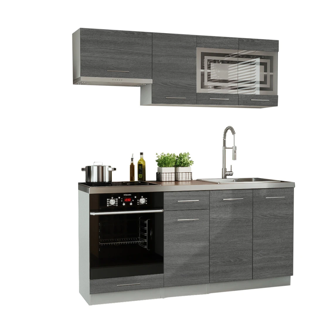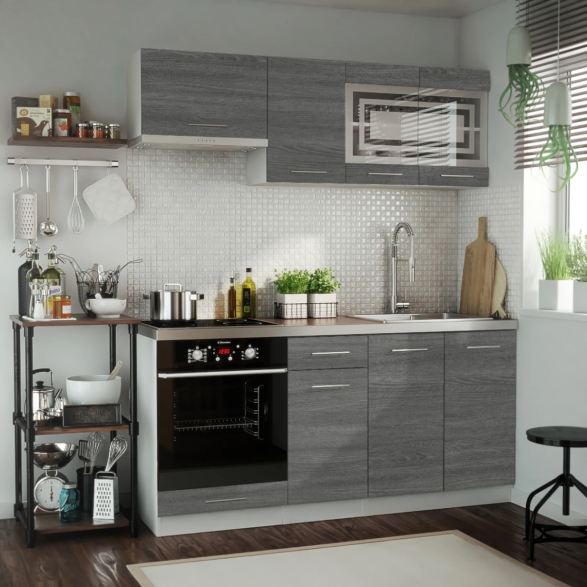 Points forts Dusine Cuisine GIOVANNA 6 éléments – bois grisé 1m80 portes vitrées four encastrable