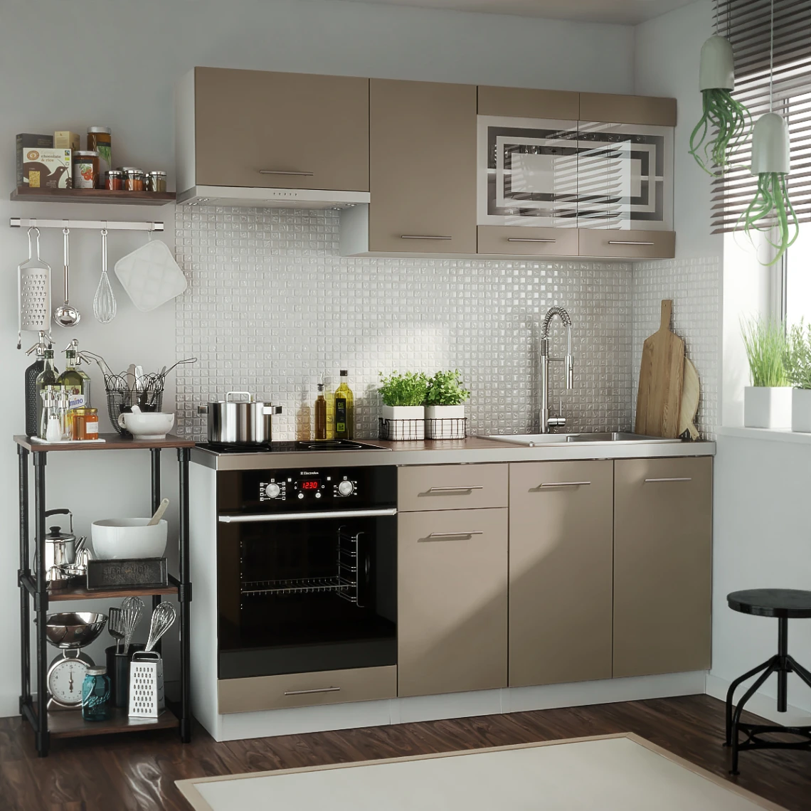 Points forts Dusine Cuisine GIOVANNA 6 éléments – taupe mat 1m80 portes vitrées four encastrable
