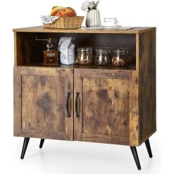 - 【Espace de stockage abondant:】Notre meuble de rangement possède 2 placards avec porte et 1 étagère ouverte qui offre un espace de stockage caché pour une variété d’articles quotidiens.Le plateau spacieux peut supporter énormément d’articles jusqu’à un poids de 50kg. De plus, il y a des porte-verres à vin supplémentaires à l’intérieur de l’armoire pour mieux stocker vos verres.