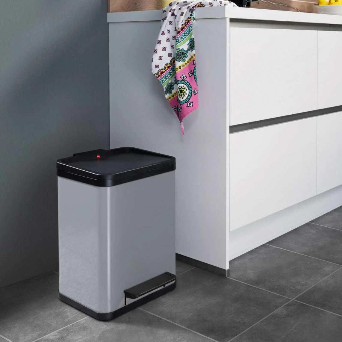 - Avec une poubelle intérieure amovible en plastique noir avec poignée (17 litres)