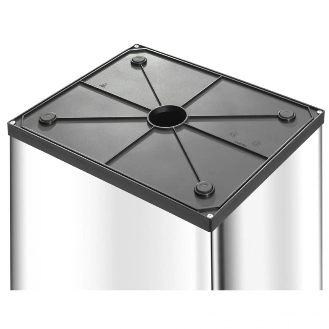 - Couvercle pivotant à fermeture automatique en deux parties