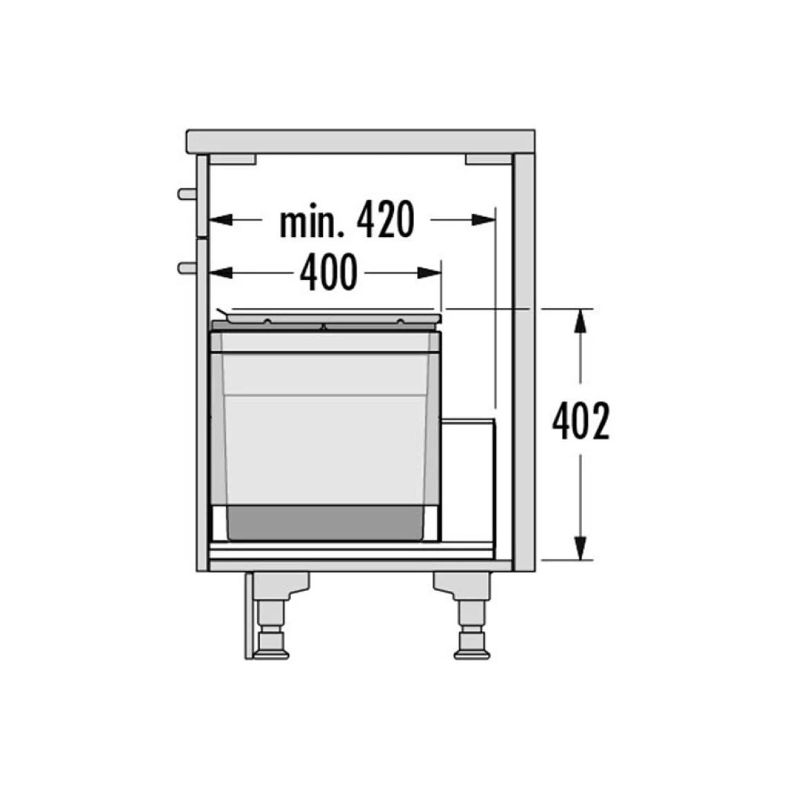 Elle s’intègre facilement dans des meubles coulissants avec tiroir d’une largeur de 90 cm.