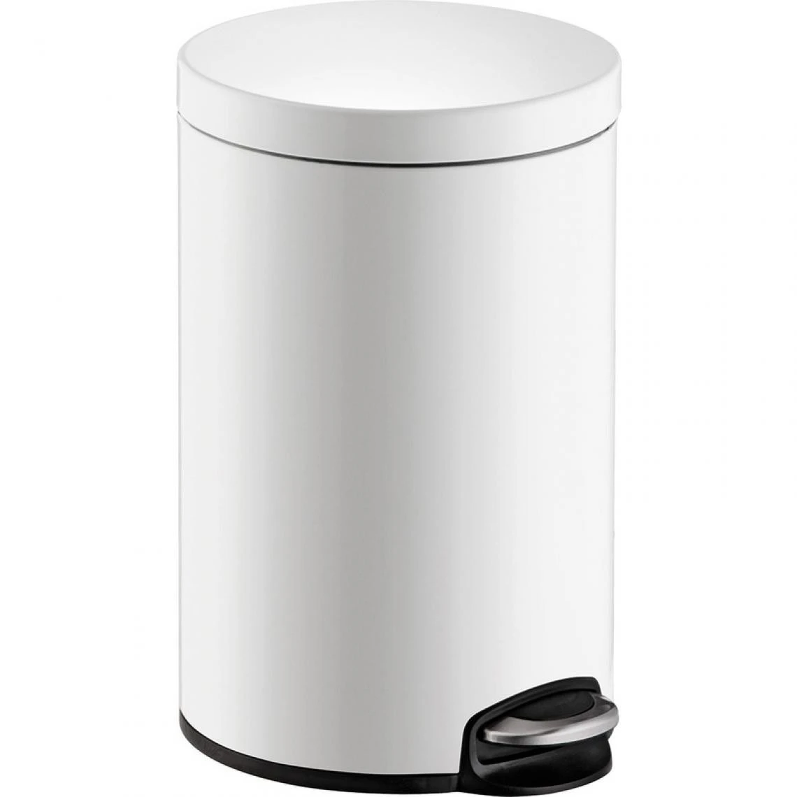 helit Poubelle à pédale ‘the silent’, 12 litres, blanc en acier inoxydable, rond, anti-traces de doigts, bac intérieur amovible, charnière en plastique avec poignée de transport, couvercle silencieux, socle en plastique, diamètre: 250 mm, hauteur: 405 mm (H2403505)