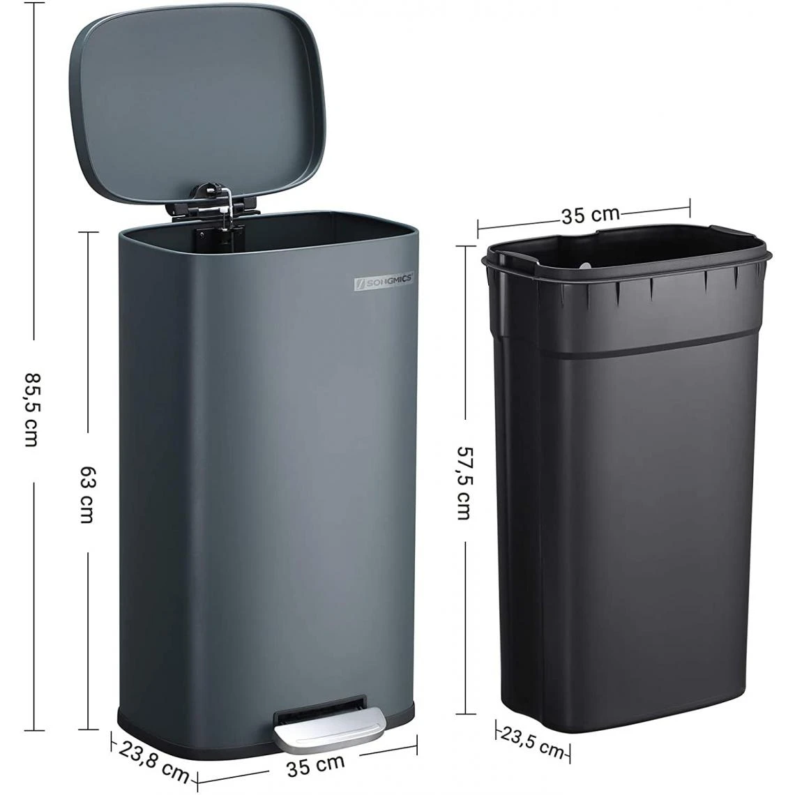 Points forts Helloshop26 Poubelle cuisine 30 litres à pédale fermeture lente anti-odeur et hygiénique gris anthracite 12_0000915