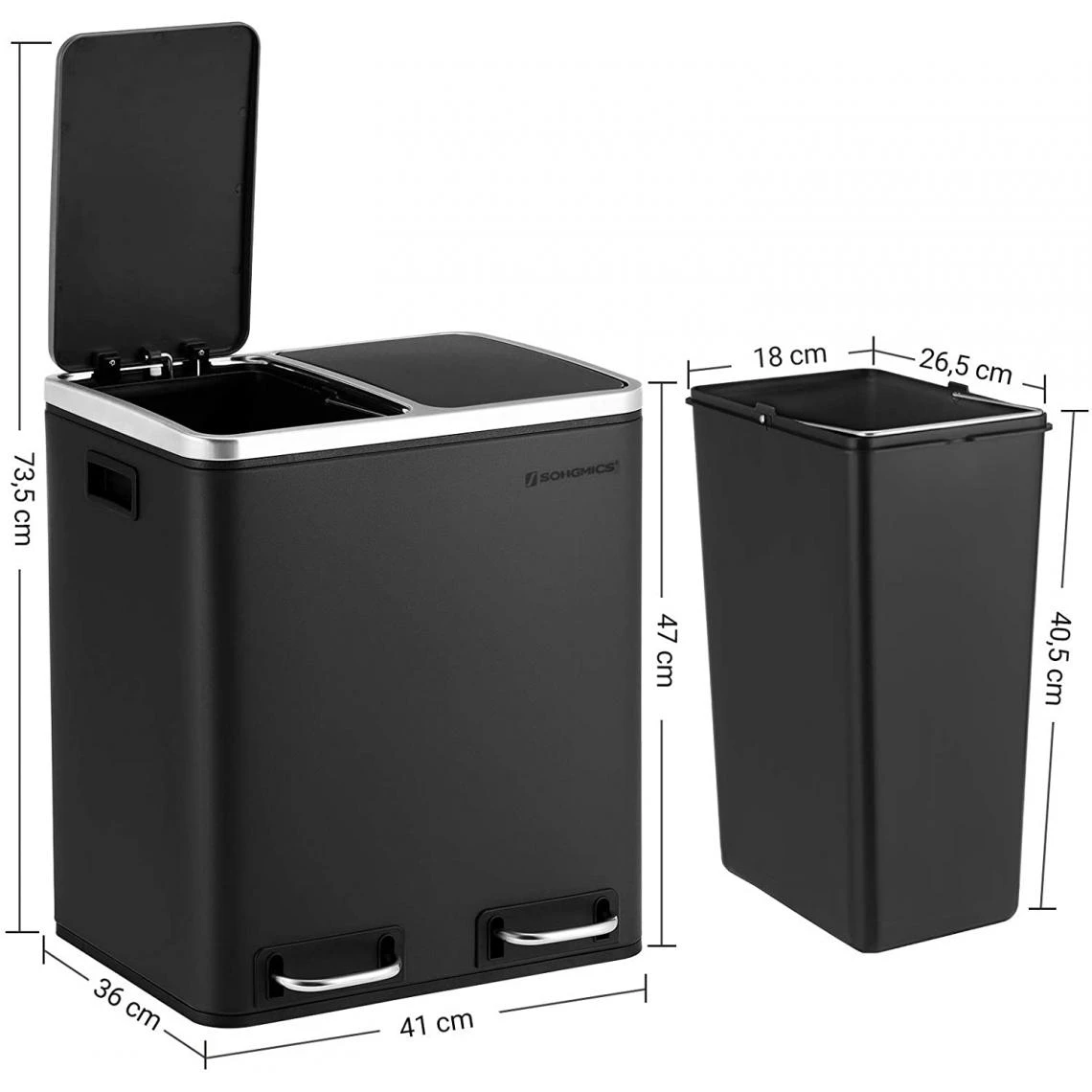 Points forts Helloshop26 Poubelle cuisine en métal à double compartiment 2 x 15 litres noir 12_0000906