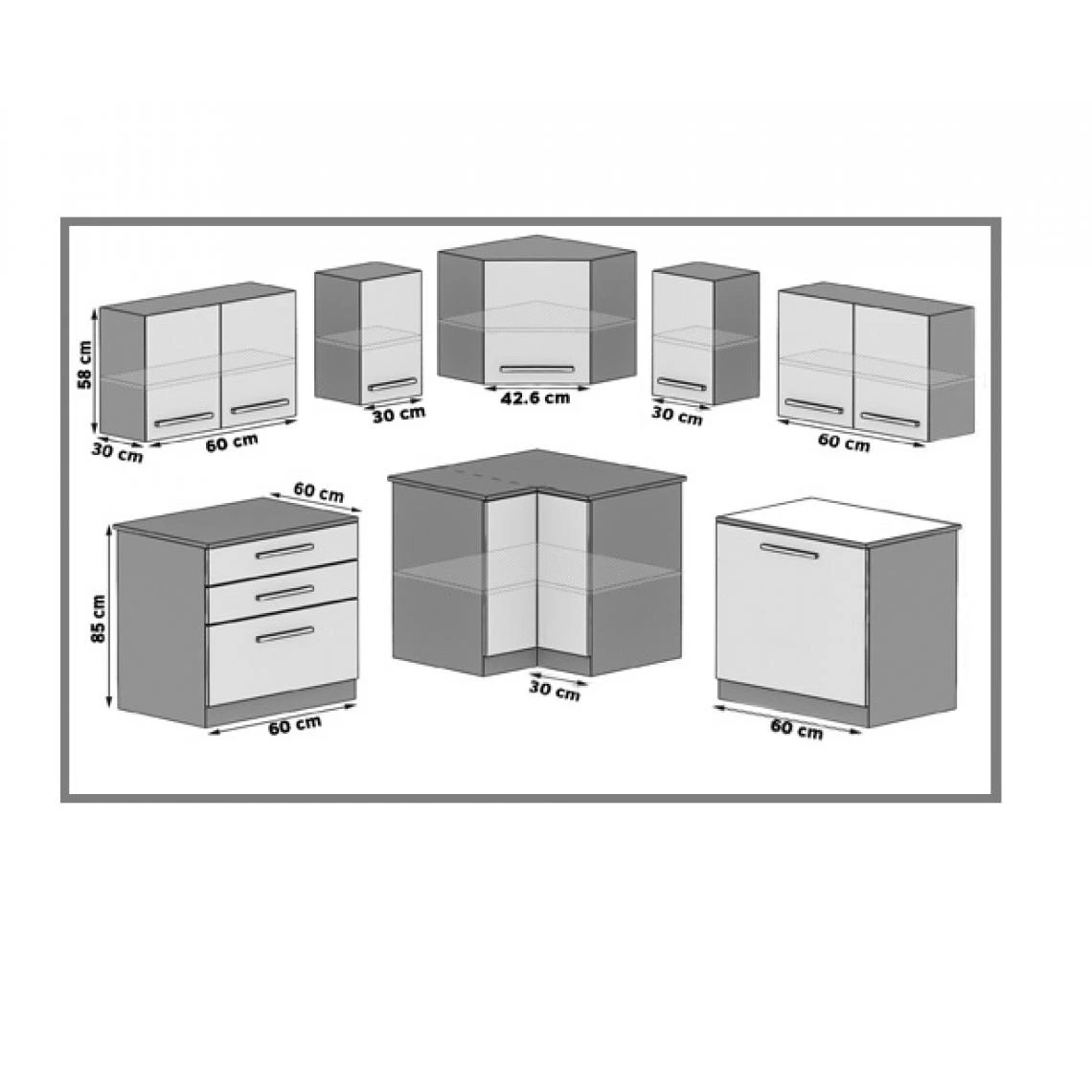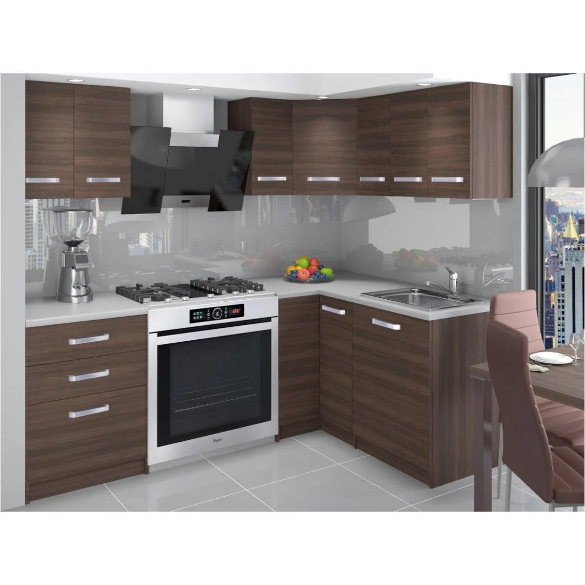 Cet ensemble de meubles de cuisine combine une qualité de fabrication et une esthétique sobre qui s’adaptera à tous les intérieurs.Cuisine livrée sans électroménager, composée de 8 éléments : meuble bas sous évier L 60 cm, meuble bas L 60 cm, meuble bas d’angle L 60 cm, deux meubles hauts L 60 cm, deux meubles hauts L 30 cm, meuble haut d’angle L 42.6 cm.Plan de travail inclus, livré en plusieurs morceaux (le morceau pour le meuble sous-évier non fourni), CARACTÉRISTIQUES TECHNIQUES: Set de meubles de cuisine modulaires offrant un bel espace de rangement tout en prenant un minimum de place, Plan de travail inclus – livré en plusieurs morceaux (le morceau pour le meuble sous-évier non fourni), Nombre d’éléments: 8, Façade: aspect bois, Corps: aspect bois wenge, Poignées + Plinthes assorties inclus, Largeur meubles bas: 180 cm, Largeur meubles hauts: 222.6 cm, Profondeur plan de travail : 60 cm, Profondeur meubles bas: 45 cm + 15 cm de vide sanitaire, Meuble en kit à monter soi-même à l’aide de la notice fournie, Vendu sans hotte, sans four, sans évier, sans frigo, sans petit électroménager, Mode de livraison pour ce produit: Livraison palette au pied de l’immeuble, Photos des articles le plus fidèle possible, mais restant non contractuelles, les nuances de couleur et le rendu des matières présentés à l’écran pouvant être différents de la réalité