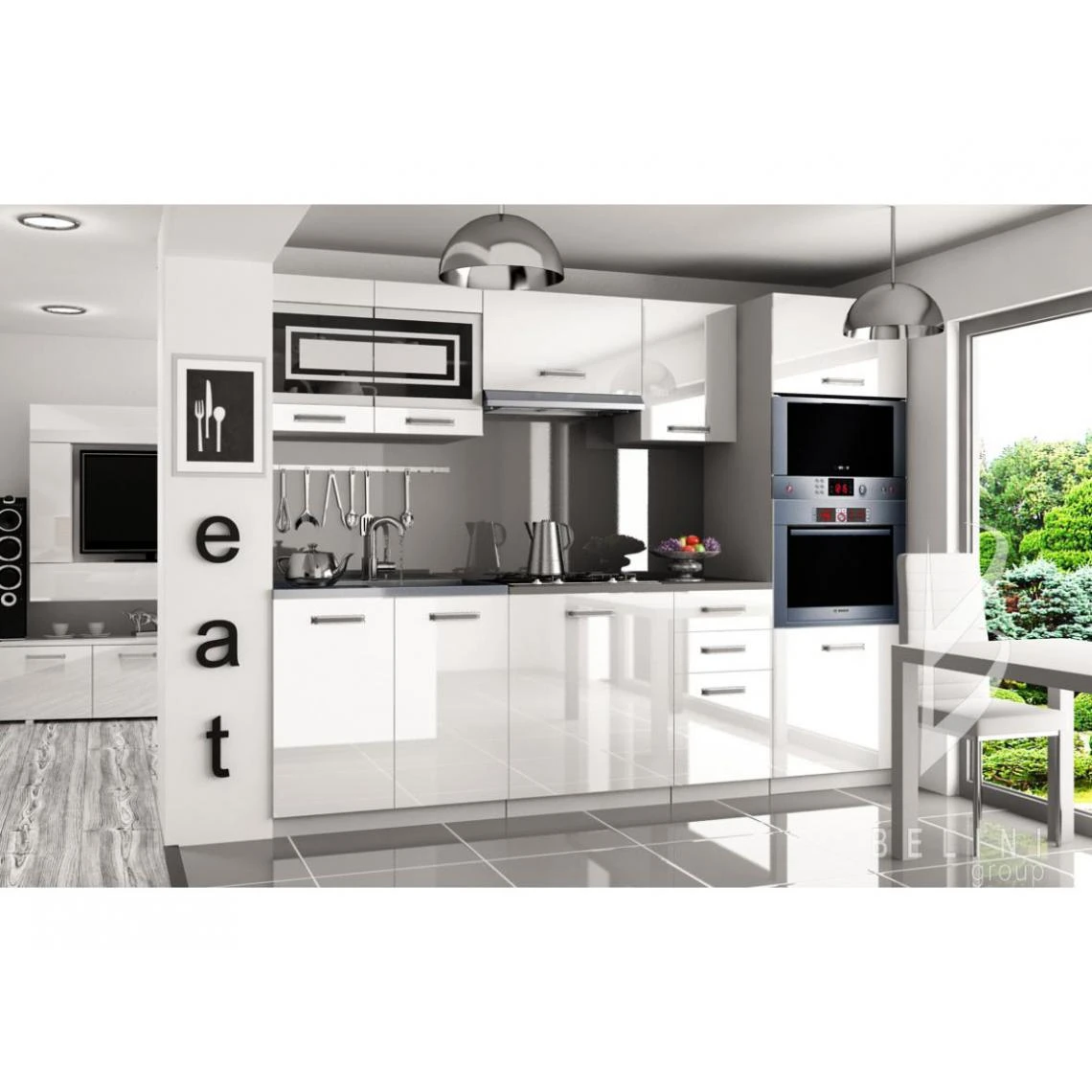 Cet ensemble de meubles de cuisine combine une qualité de fabrication et une esthétique sobre qui s’adaptera à tous les intérieurs.Cuisine livrée sans électroménager, composée de 7 éléments : meuble bas sous évier L 80 cm, meuble bas L 60 cm, mauble bas L 40 cm, meuble colonne L 60 cm, mauble haut L 80 cm, meuble haut sur hotte L 60 cm, meuble haut L 40 cm.Plan de travail inclus, livré en plusieurs morceaux (le morceau pour le meuble sous-évier non fourni), CARACTÉRISTIQUES TECHNIQUES: Set de meubles de cuisine modulaires offrant un bel espace de rangement tout en prenant un minimum de place, Plan de travail inclus – livré en plusieurs morceaux (le morceau pour le meuble sous-évier non fourni), Nombre d’éléments: 7, Structure + caissons + façades en panneaux de particules mélaminés à la texture du bois naturel, Poignées + Plinthes assorties inclus, Façade: blanc brillant, Corps: gris, Largeur: 240 cm, Profondeur plan de travail : 60 cm, Profondeur meubles bas: 45 cm + 15 cm de vide sanitaire, Meuble en kit à monter soi-même à l’aide de la notice fournie, Vendu sans hotte, sans four, sans évier, sans frigo, sans petit électroménager, Mode de livraison pour ce produit: Livraison palette au pied de l’immeuble, Photos des articles le plus fidèle possible, mais restant non contractuelles, les nuances de couleur et le rendu des matières présentés à l’écran pouvant être différents de la réalité
