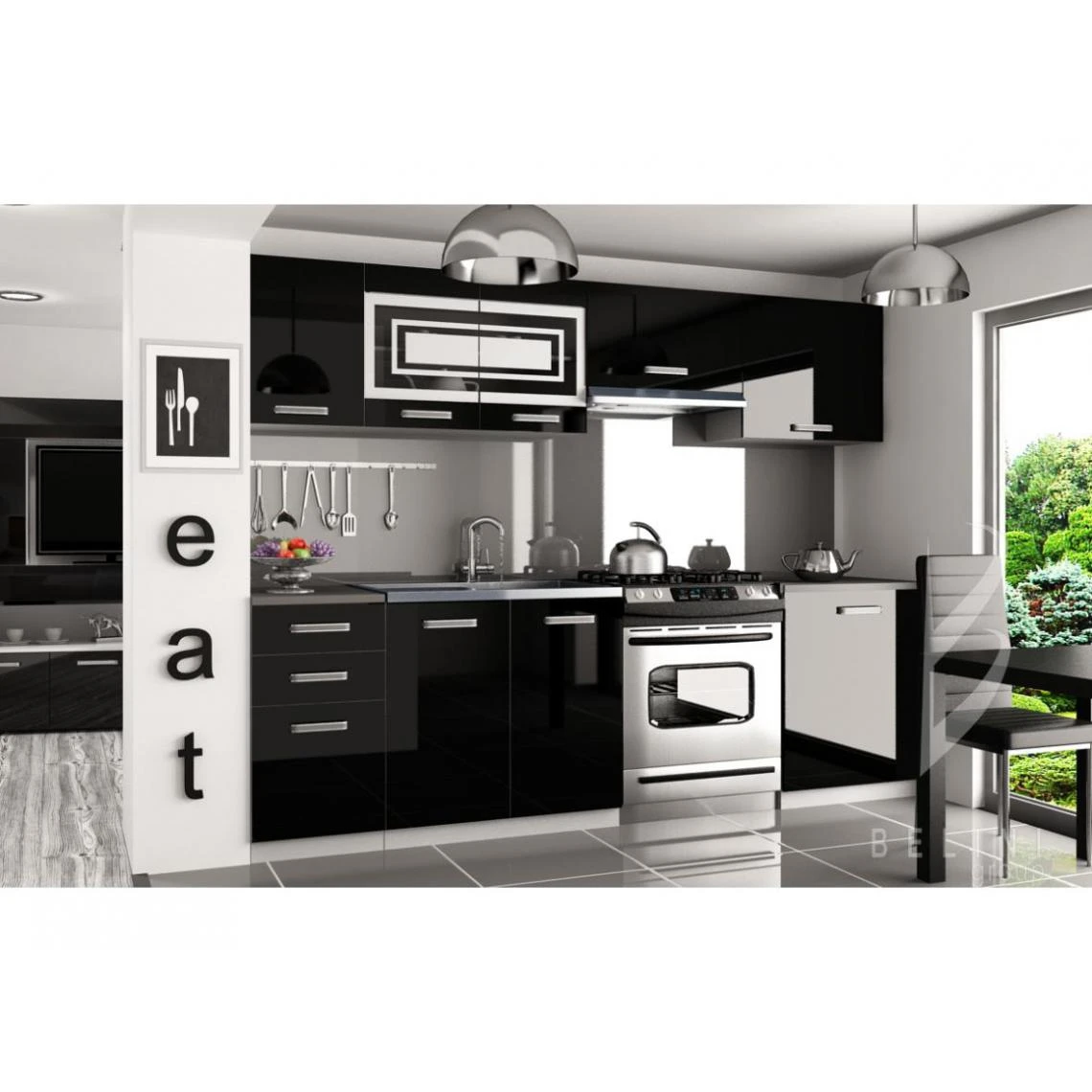 Cet ensemble de meubles de cuisine combine une qualité de fabrication et une esthétique sobre qui s’adaptera à tous les intérieurs.Cuisine livrée sans électroménager, composée de 7 éléments : meuble bas sous évier L 80 cm, meuble bas L 40 cm, meuble bas L 60 cm, meuble haut L 80 cm, meuble haut L 60 cm, meuble haut L 40 cm, meuble haut sur hotte L 60 cm.Plan de travail inclus, livré en plusieurs morceaux (le morceau pour le meuble sous-évier non fourni), CARACTÉRISTIQUES TECHNIQUES: Set de meubles de cuisine modulaires offrant un bel espace de rangement tout en prenant un minimum de place, Plan de travail inclus – livré en plusieurs morceaux (le morceau pour le meuble sous-évier non fourni), Nombre d’éléments: 7, Structure + caissons + façades en panneaux de particules mélaminés à la texture du bois naturel, Poignées + Plinthes assorties inclus, Façade: noir brillant, Corps: gris, Largeur: 240 cm, Profondeur plan de travail : 60 cm, Profondeur meubles bas: 45 cm + 15 cm de vide sanitaire, Meuble en kit à monter soi-même à l’aide de la notice fournie, Vendu sans hotte, sans four, sans évier, sans frigo, sans petit électroménager, Mode de livraison pour ce produit: Livraison palette au pied de l’immeuble, Photos des articles le plus fidèle possible, mais restant non contractuelles, les nuances de couleur et le rendu des matières présentés à l’écran pouvant être différents de la réalité
