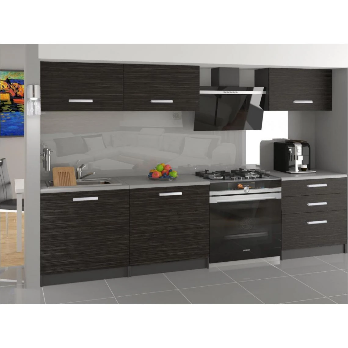 Cet ensemble de meubles de cuisine combine une qualité de fabrication et une esthétique sobre qui s’adaptera à tous les intérieurs.Cuisine livrée sans électroménager, composée de 6 éléments : meuble bas sous évier L 60 cm, deux meubles bas L 60 cm, trois meubles hauts L 60 cmPlan de travail inclus, livré en plusieurs morceaux (le morceau pour le meuble sous-évier non fourni), CARACTÉRISTIQUES TECHNIQUES: Set de meubles de cuisine modulaires offrant un bel espace de rangement tout en prenant un minimum de place, Plan de travail inclus – livré en plusieurs morceaux (le morceau pour le meuble sous-évier non fourni), Nombre d’éléments: 6, Façade: aspect bois, Corps: noir, Poignées + Plinthes assorties inclus, Largeur meubles bas: 180 cm, Largeur meubles hauts: 180 cm, Profondeur plan de travail : 60 cm, Profondeur meubles bas: 45 cm + 15 cm de vide sanitaire, Meuble en kit à monter soi-même à l’aide de la notice fournie, Vendu sans hotte, sans four, sans évier, sans frigo, sans petit électroménager, Mode de livraison pour ce produit: Livraison palette au pied de l’immeuble, Photos des articles le plus fidèle possible, mais restant non contractuelles, les nuances de couleur et le rendu des matières présentés à l’écran pouvant être différents de la réalité