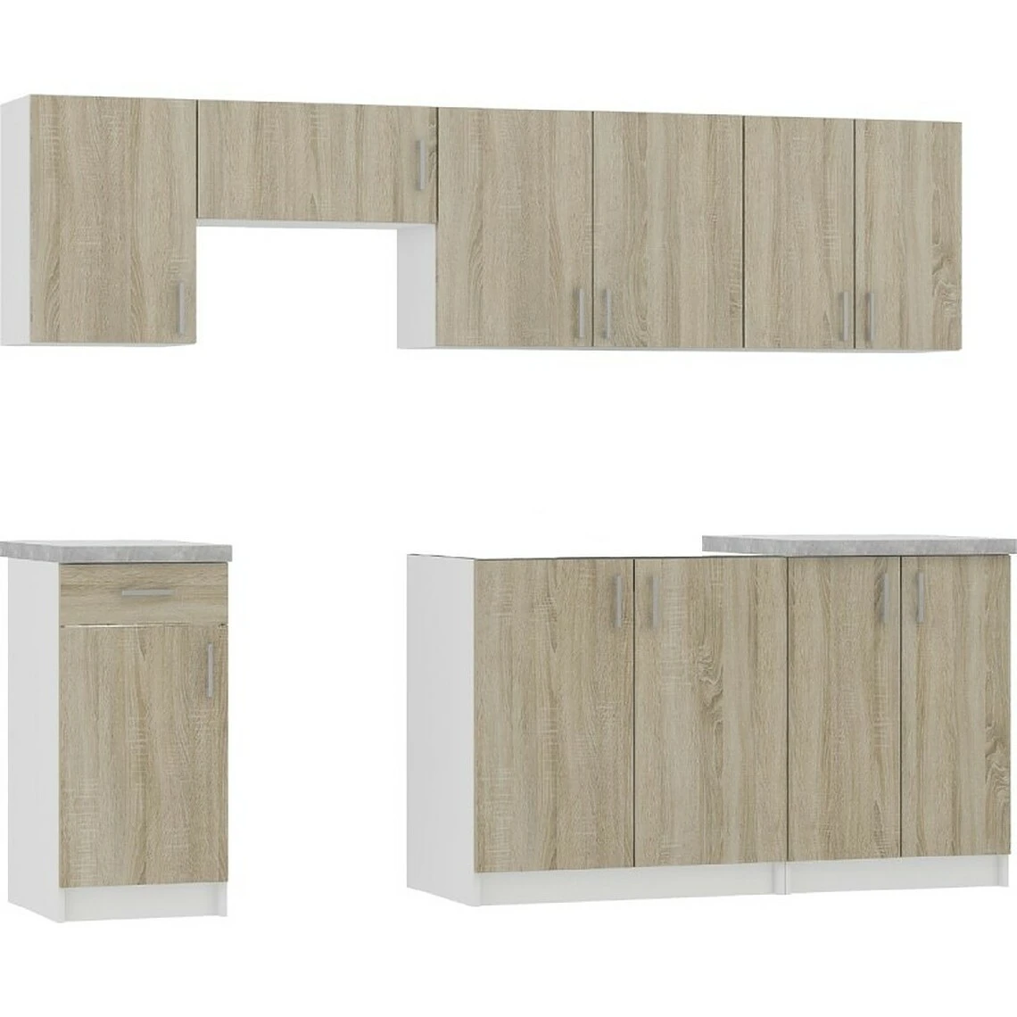 Points forts Hucoco NOLA | Cuisine complète linéaire + modulaire 240cm 7 pcs | Plan de travail INCLUS | Ensemble meubles cuisine – Sonoma