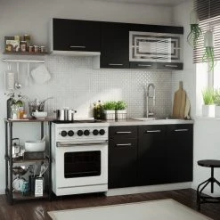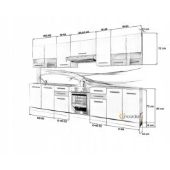 L’ensemble ONYX 180/240 cm est composé de 7 armoires dont 3 tiroirs au design moderne et fonctionnel. Une combinaison très élégante de couleurs de cet ensemble donnera un aspect unique à chaque cuisine. Grâce à ses dimensions compactes elle s’adaptera dans tous les espaces. Placards hauts : meuble haut 80 cm à portes vitrées, meuble 60 cm, meuble haut sur hotte 60 cm, meuble 40 cm; Placards bas : meuble bas sous évier 80 cm, meuble bas 60 cm, meuble bas 40 cm à 3 tiroirs, CARACTÉRISTIQUES TECHNIQUES: Set de meubles de cuisine classiques et de haute qualité, 7 armoires + 3 tiroirs, Poignées métal, Portes vitrées – verre Satinato, Façade bicolore: gris mat+ gris clair mat + Corps: gris + Plinthes de recouvrement assorties, Pieds réglables 10 cm, Longueur totale meubles bas: 180 cm, Longueur meubles hauts: 240 cm, Panneaux MDF + La surface en mélamine, finition mat, Vendu sans hotte, sans four, sans évier , Livré avec pièces de montage, Meuble en kit à monter soi-même à l’aide de la notice fournie, Photos des articles le plus fidèle possible, mais restant non contractuelles, les nuances de couleur et le rendu des matières présentés à l’écran pouvant être différents de la réalité