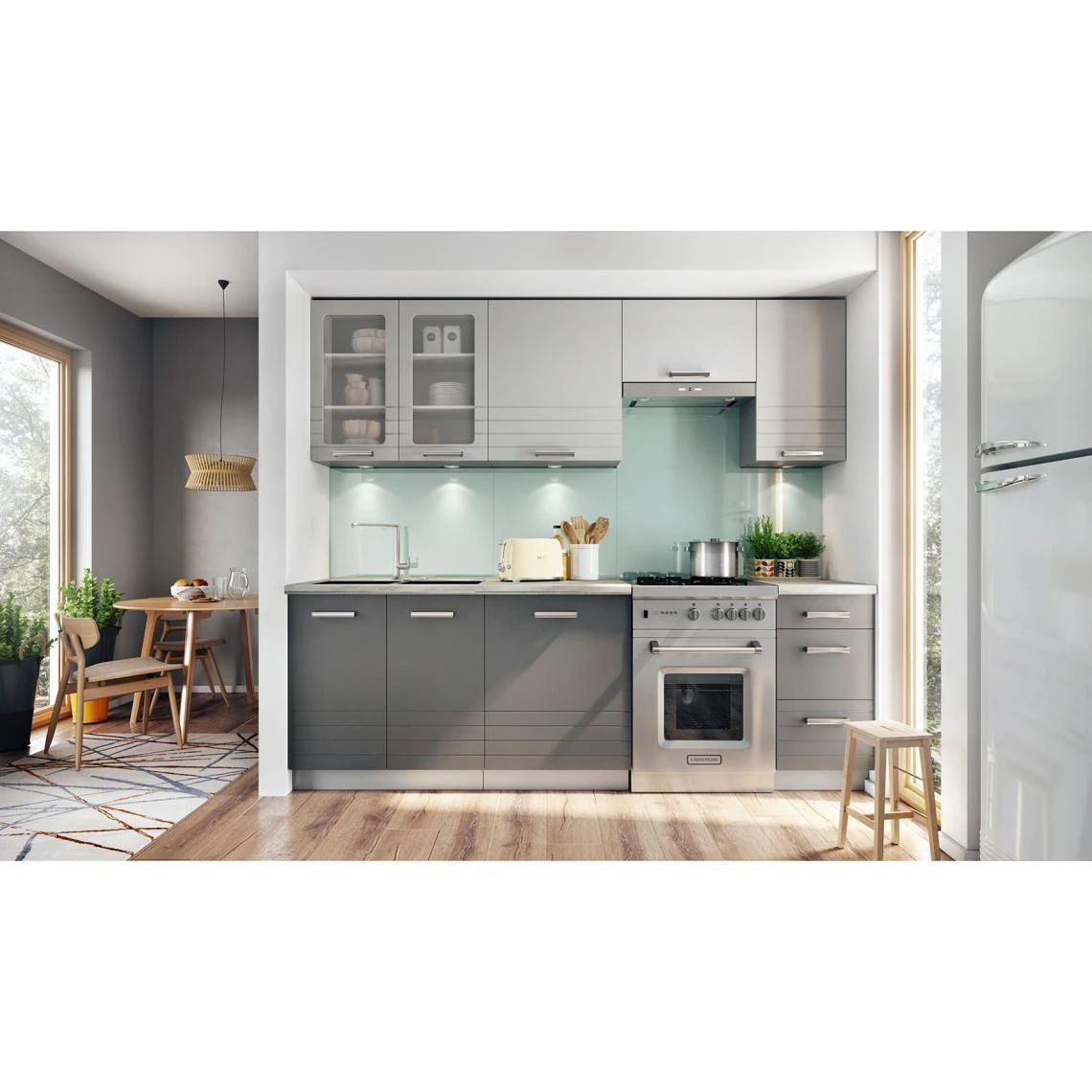 Points forts Hucoco ONYX S – Cuisine Complète Modulaire + Linéaire L 240cm 7 pcs – Ensemble Armoires Meubles cuisine – Finition Mat – Poignées métal – Gris Clair/Gris