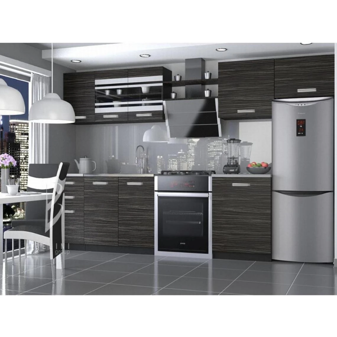 Cet ensemble de meubles de cuisine combine une qualité de fabrication et une esthétique sobre qui s’adaptera à tous les intérieurs.Cuisine livrée sans électroménager, composée de 9 éléments : meuble bas sous évier L 80 cm, meuble bas L 60 cm, mauble bas L 40 cm, meuble haut L 40 cm, meuble haut L 80 cm, meuble haut L 60 cm, meuble ahut sur hotte L 60 cm, deux étagères L 60 cm.Plan de travail inclus, livré en plusieurs morceaux (le morceau pour le meuble sous-évier non fourni), CARACTÉRISTIQUES TECHNIQUES: Set de meubles de cuisine modulaires offrant un bel espace de rangement tout en prenant un minimum de place, Plan de travail inclus – livré en plusieurs morceaux (le morceau pour le meuble sous-évier non fourni), Nombre d’éléments: 9, Façade: aspect bois, Corps: noir, Poignées + Plinthes assorties inclus, Largeur meubles bas: 180 cm, Largeur meubles hauts: 300 cm, Profondeur plan de travail : 60 cm, Profondeur meubles bas: 45 cm + 15 cm de vide sanitaire, Meuble en kit à monter soi-même à l’aide de la notice fournie, Vendu sans hotte, sans four, sans évier, sans frigo, sans petit électroménager, Mode de livraison pour ce produit: Livraison palette au pied de l’immeuble, Photos des articles le plus fidèle possible, mais restant non contractuelles, les nuances de couleur et le rendu des matières présentés à l’écran pouvant être différents de la réalité