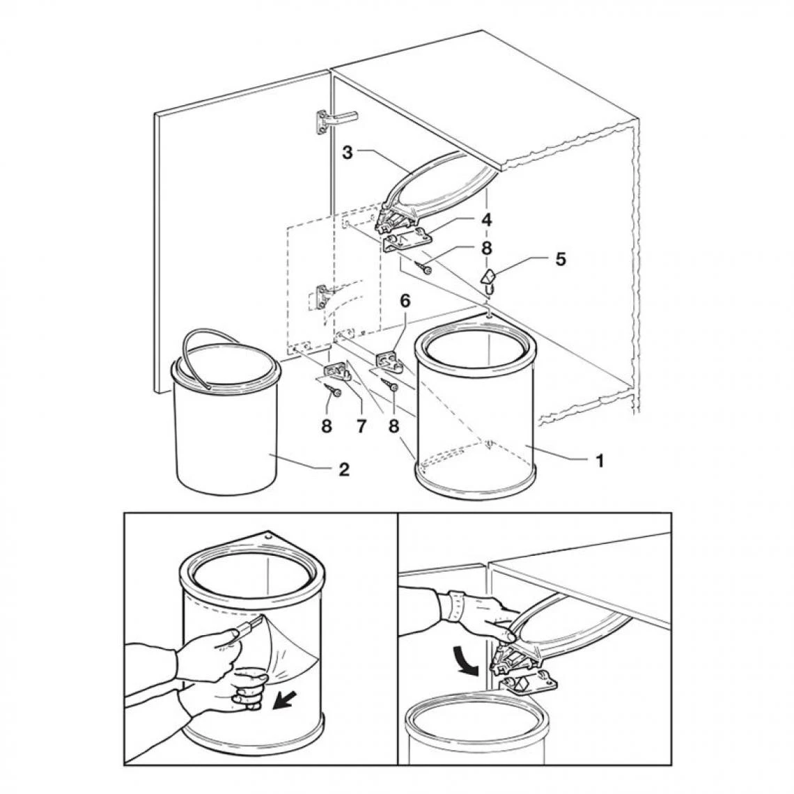 Fabriquée en plastique couleur blanc, gris ou avec finition inox, elle a une capacité de 13 litres et est très facile à monter dans la plupart des meubles de cuisine et de salle de bain avec une largeur intérieure minimum de 400mm. Elle est valable tant pour les ouvertures de porte à gauche que à droite.