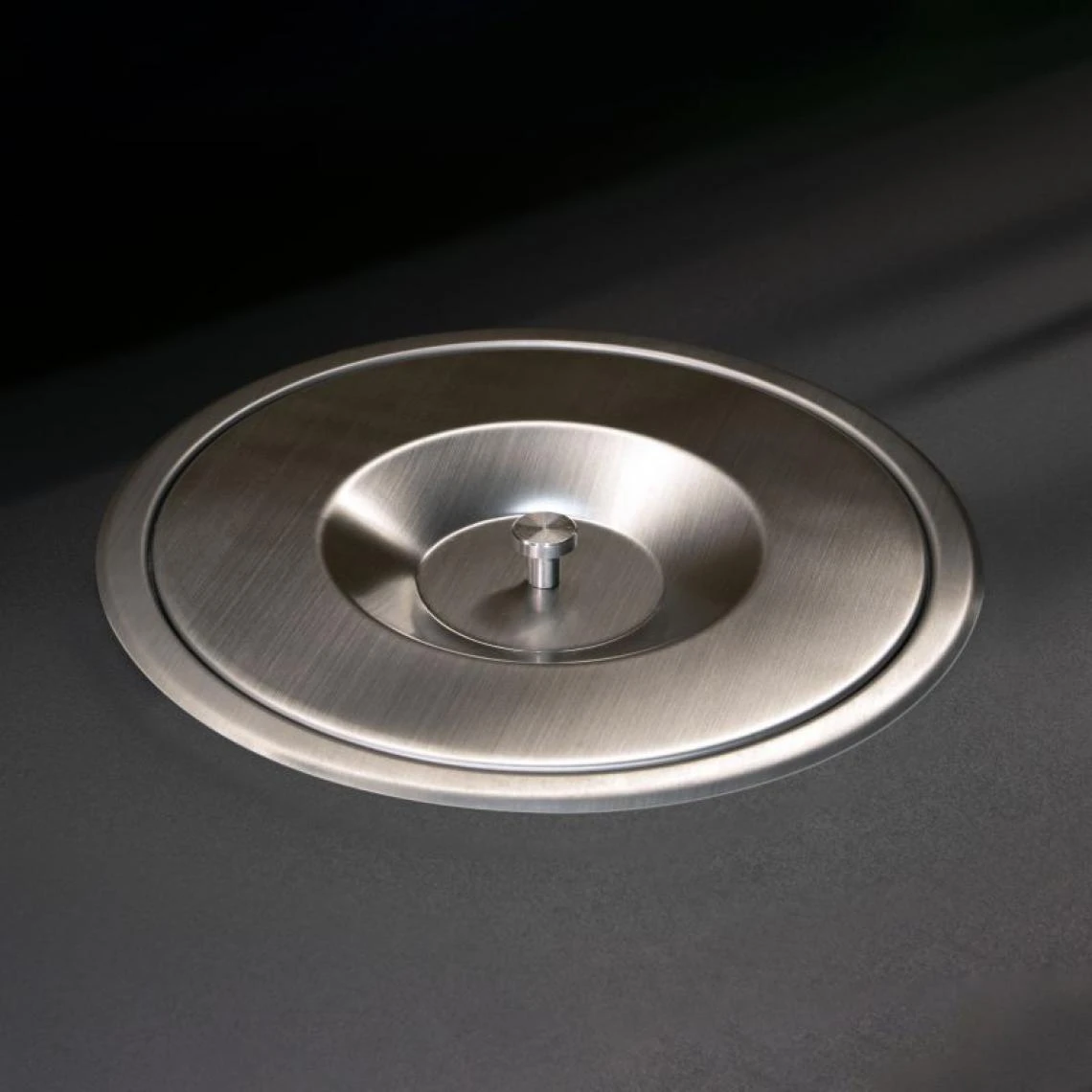 Pour son installation il est nécessaire un usinage préalable dans le plan de travail de 210mm de diamètre. Avec deux anneaux d’appui en acier, l’un pour assurer la stabilité de la poubelle et l’autre pour placer et maintenir les sacs à ordures.