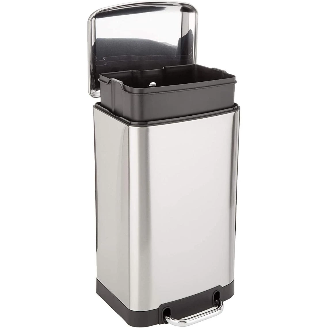 Points forts marque generique Basics Poubelle rectangulaire à fermeture douce avec pédale en acier, 20 L, nickel