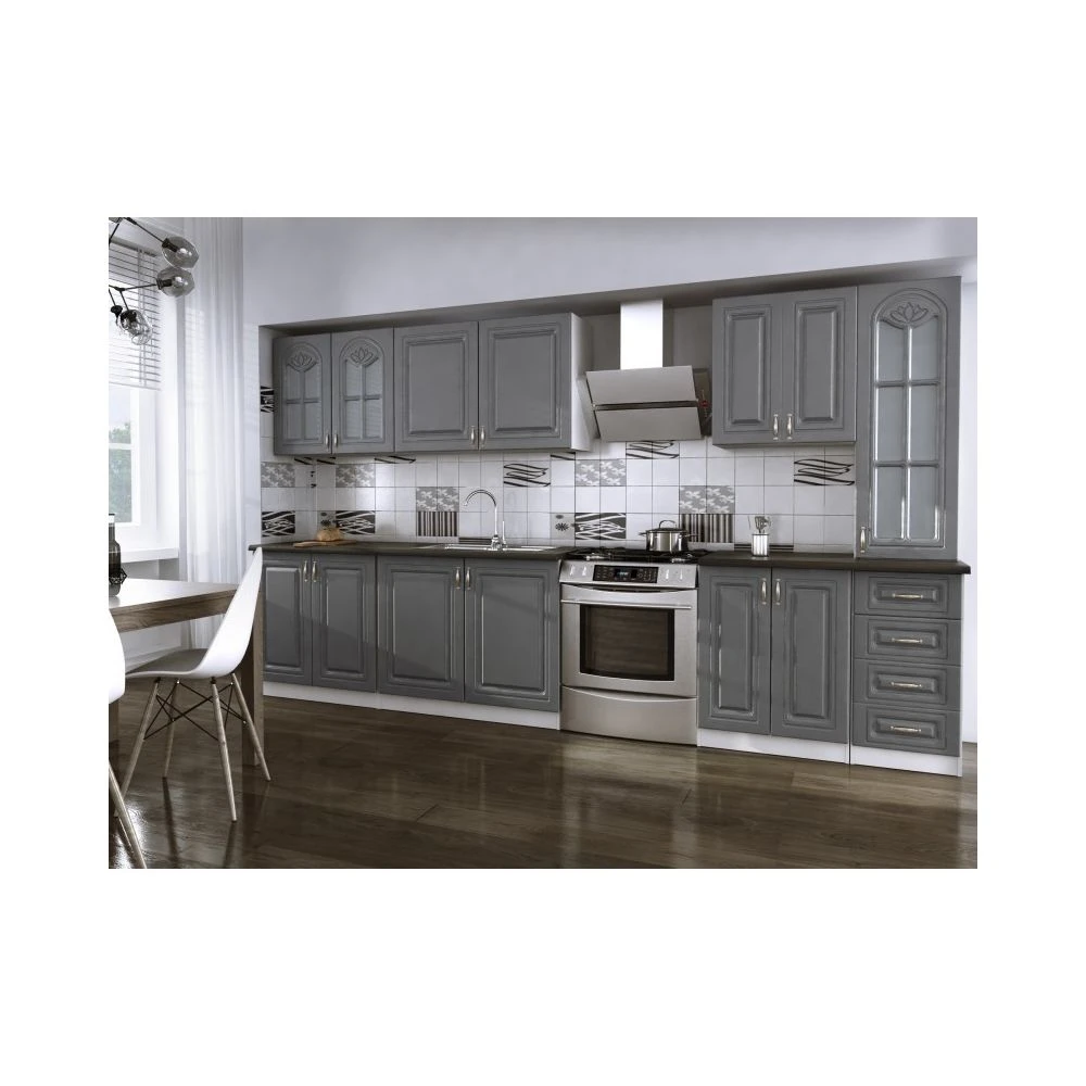 Points forts Meublesline Cuisine complète 3m DINA grise avec moulures