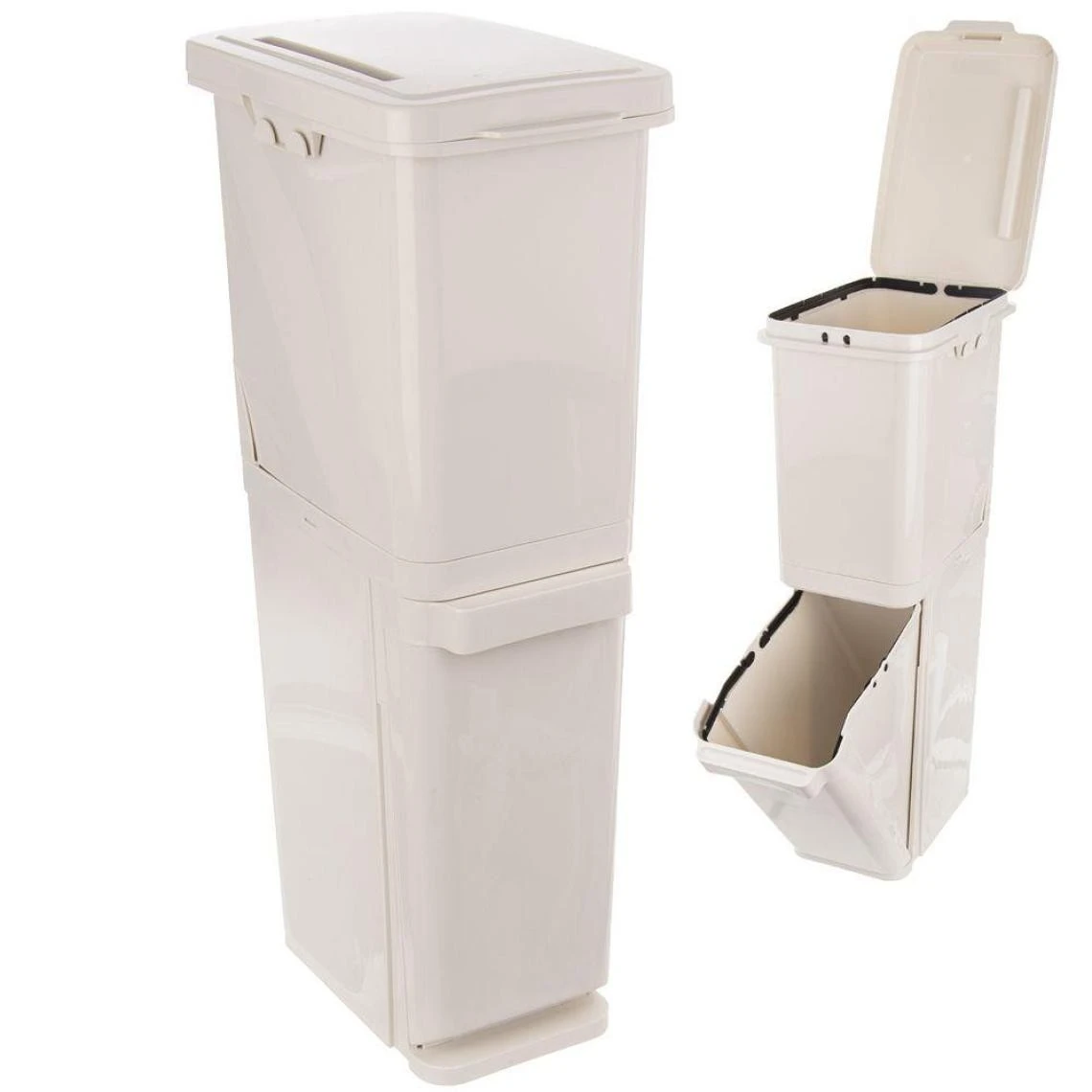 DEUX NIVEAUX – Poubelle combinée composée de deux conteneurs à déchets séparés. Les bacs peuvent être utilisés séparément ou commodément empilés les uns sur les autres, ce qui facilitera considérablement la séparation des déchets. Les dimensions totales du panier sont de 37 x 23 x 75 cm. Chacun des paniers a une capacité de 17,5 litres, ce qui donne une capacité totale de 35 litres. DURABLE – Le panier est en plastique beige de haute qualité. S’il est utilisé correctement, il durera de nombreuses années. UTILE – Le panier facilitera la séparation des déchets. Utile à la maison et au bureau, salle d’attente et bureau. PRATIQUE – Chacun des paniers a un rabat indépendant, le niveau inférieur est incliné vers l’avant, le supérieur s’ouvre par le haut. PRATIQUE – Chacun des paniers est équipé à l’intérieur de poignées qui maintiennent le sac, ce qui facilitera considérablement l’utilisation. Grâce aux poignées, le sac poubelle ne tombera pas à l’intérieur. Poubelle pratique, a une structure à deux étages. Les conteneurs pour une utilisation pratique sont empilés les uns sur les autres. Grâce au fait que les paniers sont étroits, ils s’adapteront sous n’importe quelle armoire standard. Les poubelles prennent peu de place et vous permettront de trier les déchets de manière pratique. Les poubelles sont nécessaires dans chaque maison, mais nous pouvons également les utiliser au bureau, dans la salle d’attente et dans le jardin. Produit original de la marque tchèque Orion. Fabriqué conformément aux normes européennes.