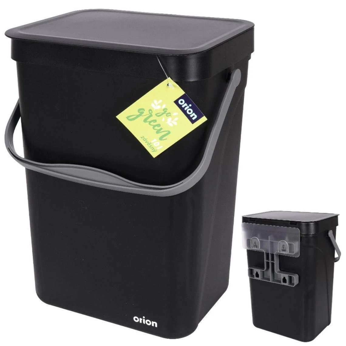 Poubelle noire de 10 litres. Panier conçu pour être monté sur le mur ou la porte de l’armoire. Équipé d’un couvercle et d’une poignée pratique qui facilitera le transport. Il dispose d’un kit de montage. Produit original de la marque tchèque Orion.