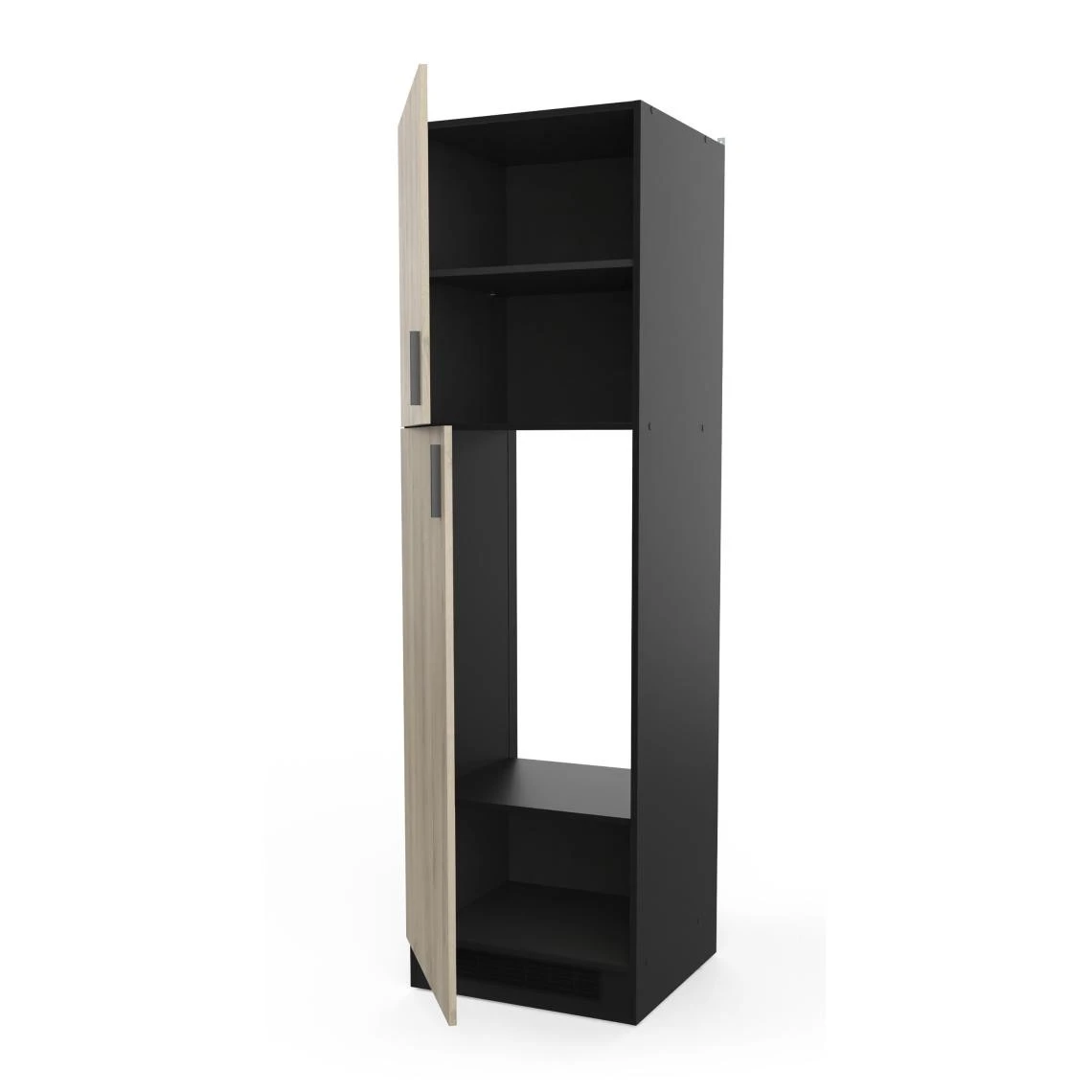 Points forts Pegane Colonne de cuisine 2 portes coloris chêne kronberg, noir mat – Longueur 60 x Hauteur 206,90 x Profondeur 60 cm
