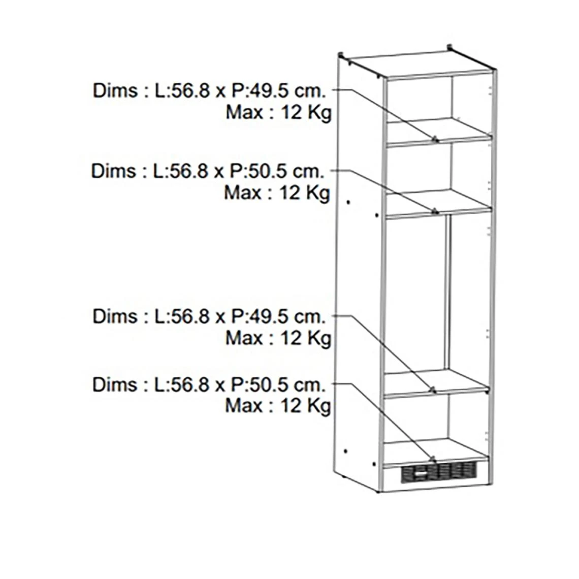 Dimensions du meuble : Longueur 60 x Hauteur 206,90 x Profondeur 60 cm