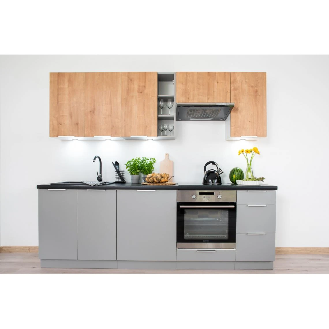 Points forts Pegane Cuisine complète Ela 8 éléments couleur chêne/gris clair – Longueur 240 cm