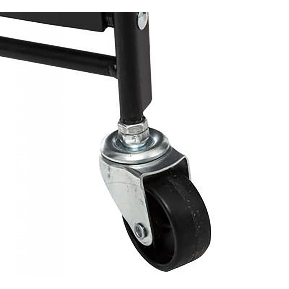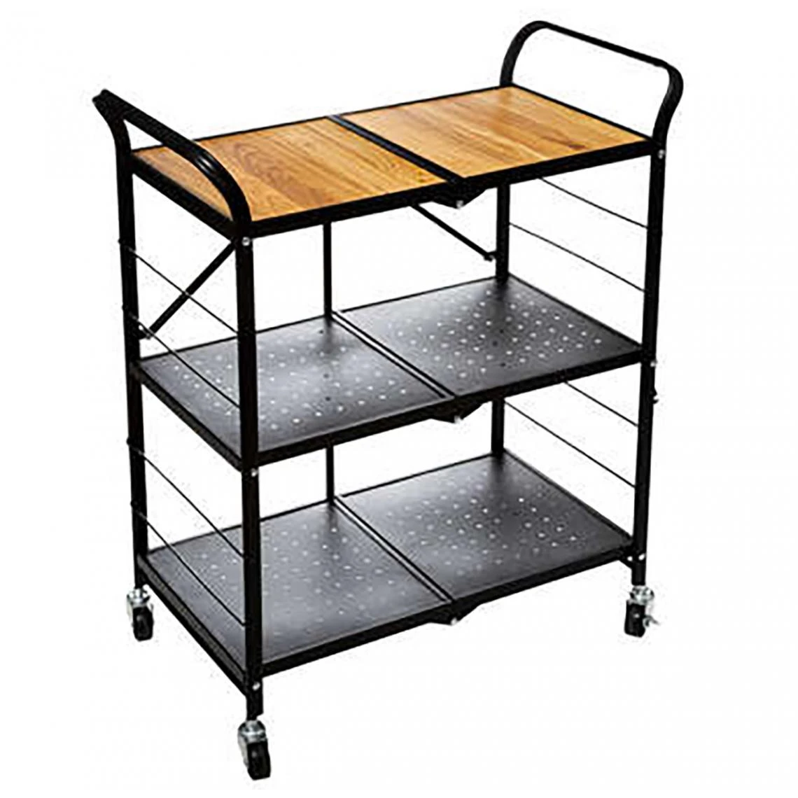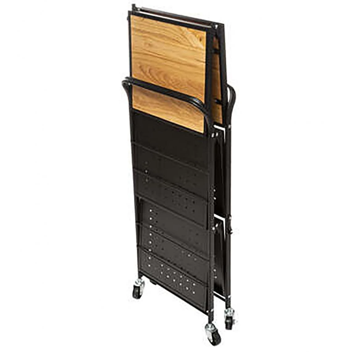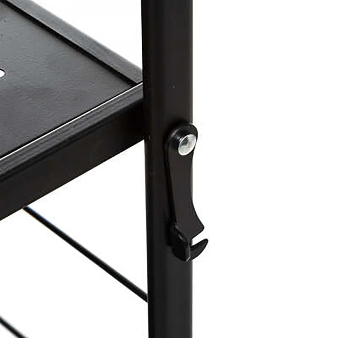 Desserte en acier coloris noir avec système sur le côté permettant de la plier et la déplier facilement.