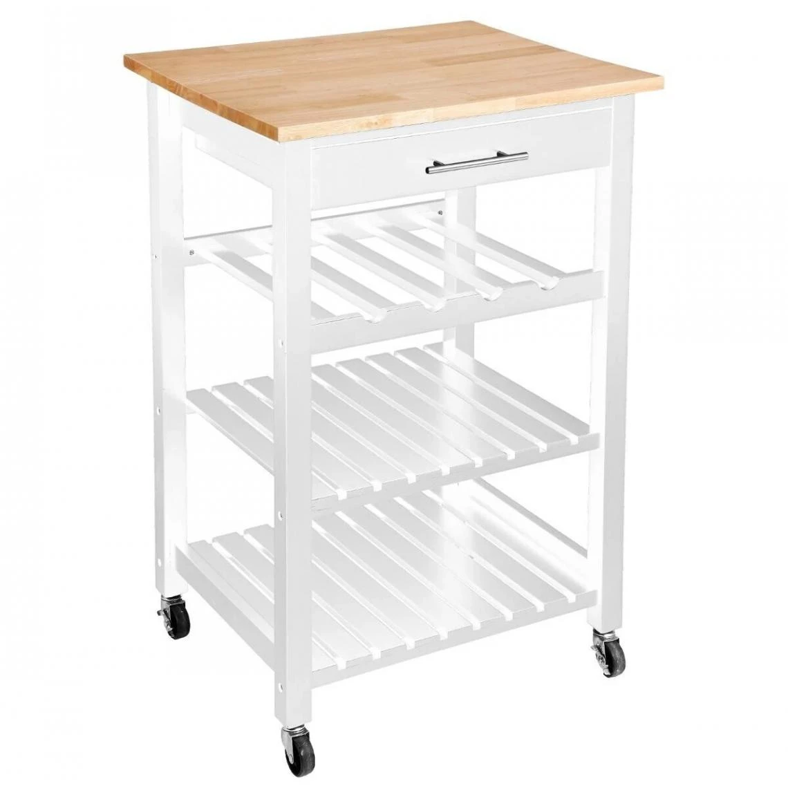 Cette desserte de 3 étagères et 1 tiroir est montée sur quatre roues directionnelles et possède un système de freins. Vous pourrez donc la bouger selon vos envies. cette petite desserte vous suivra partout. À monter soi-même.