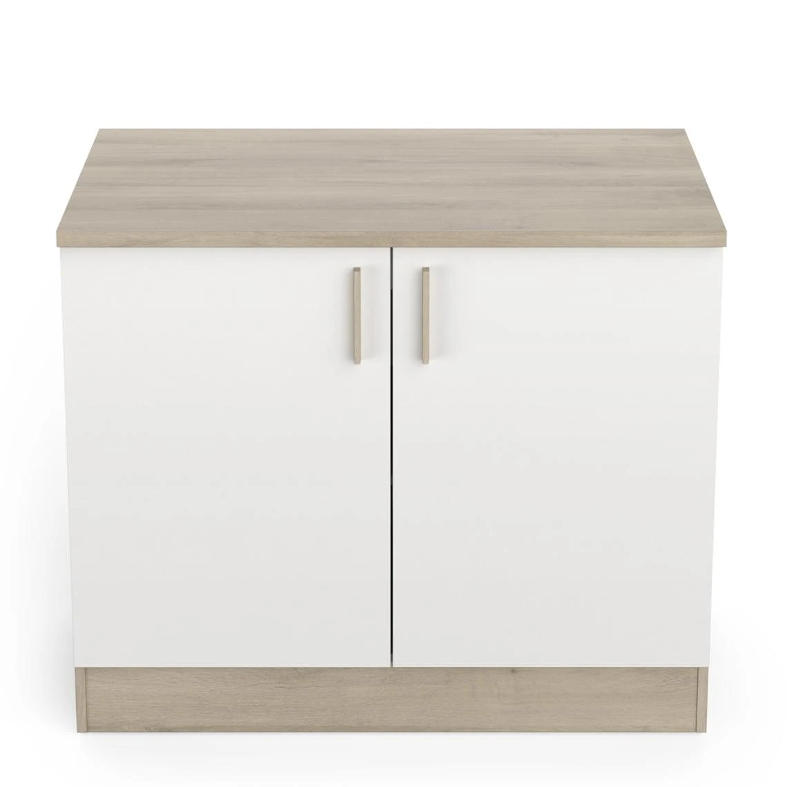 Points forts Pegane Meuble bas de cuisine coloris chêne kronberg, blanc – Longueur 100 x Hauteur 85 x Profondeur 60 cm