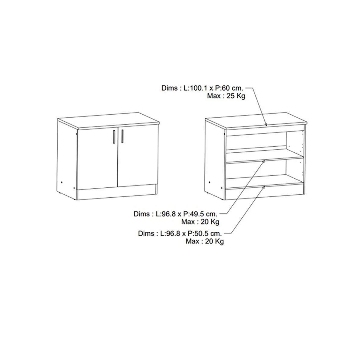 Dimensions du plan de travail : Longueur 100,10 x Profondeur 60 cm / charge maximale : 25 kg