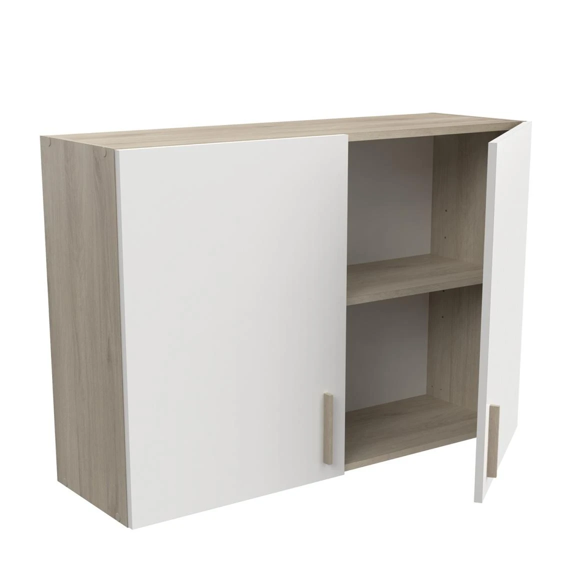 Points forts Pegane Meuble haut de cuisine 2 portes coloris chêne kronberg, blanc – Longueur 100 x Hauteur 70 x Profondeur 30 cm