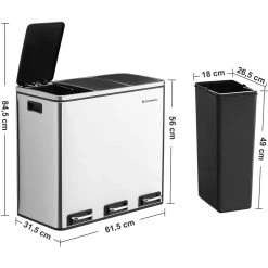 HELLOSHOP26 Poubelle Cuisine De Recyclage3 X 18 Litres Gris Métallisé 12_0000913