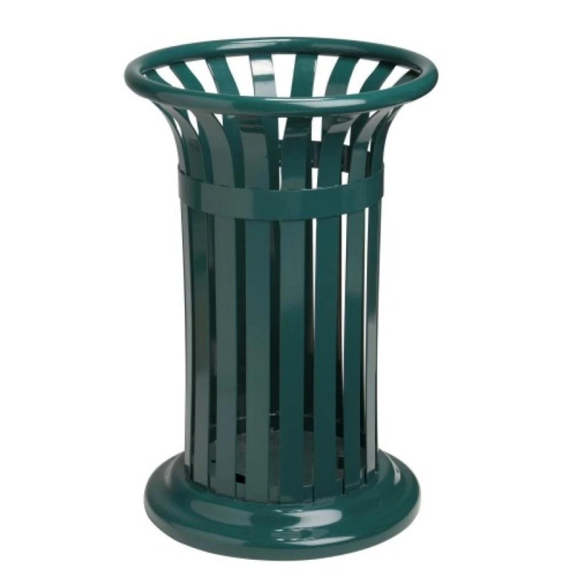 Pour les parcs, jardins publics, centres urbains, galeries marchandes… En acier poudré polyester. Support de sac intérieur. Fixation au sol en 3 points. Épaisseur des lattes : 3 mm.